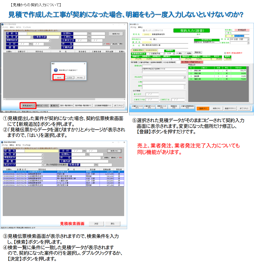 - 見積で作成した工事が契約になった場合、明細をもう一度入力しないといけないのか?