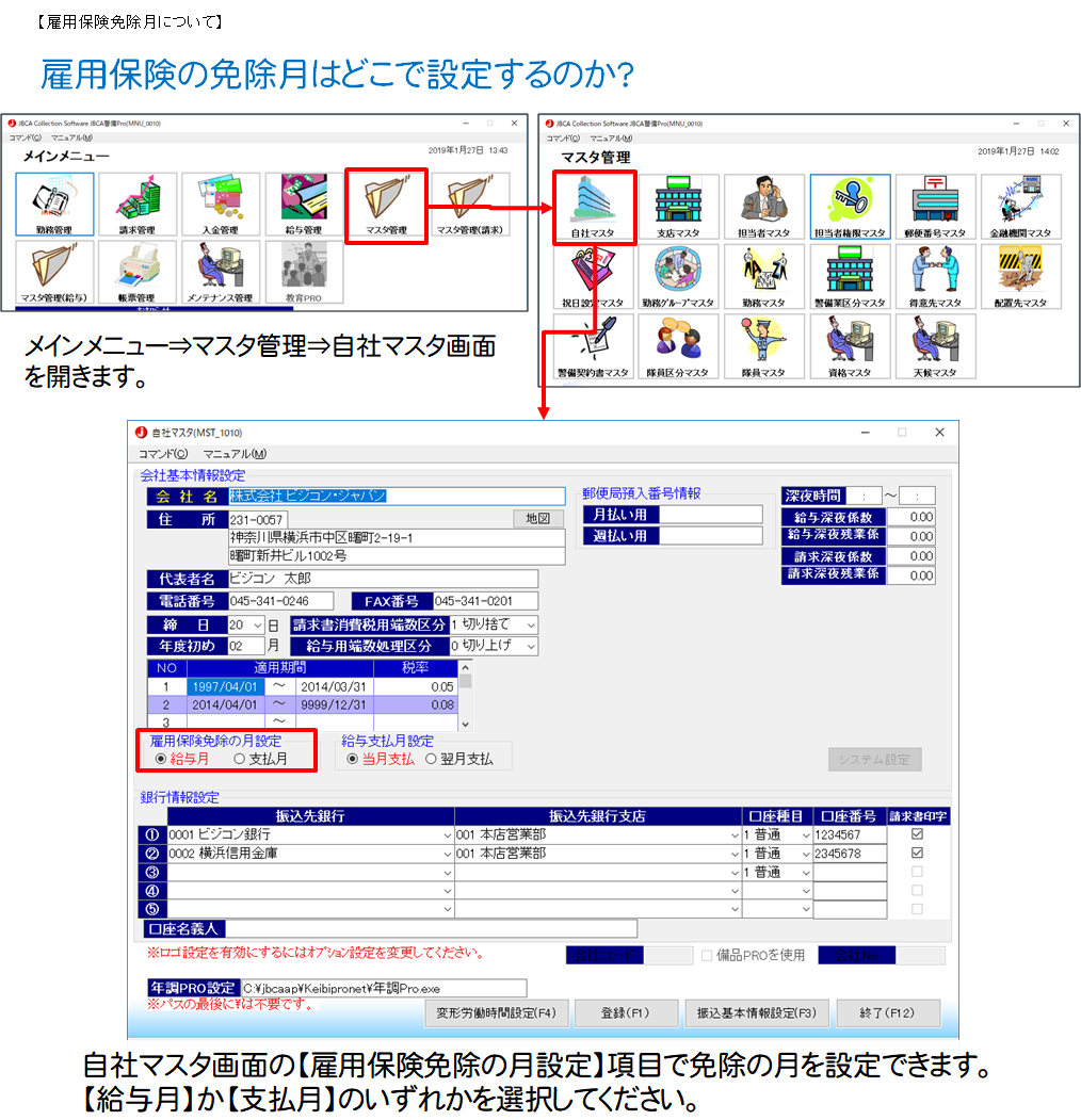 雇用保険の免除月はどこで設定するのか?