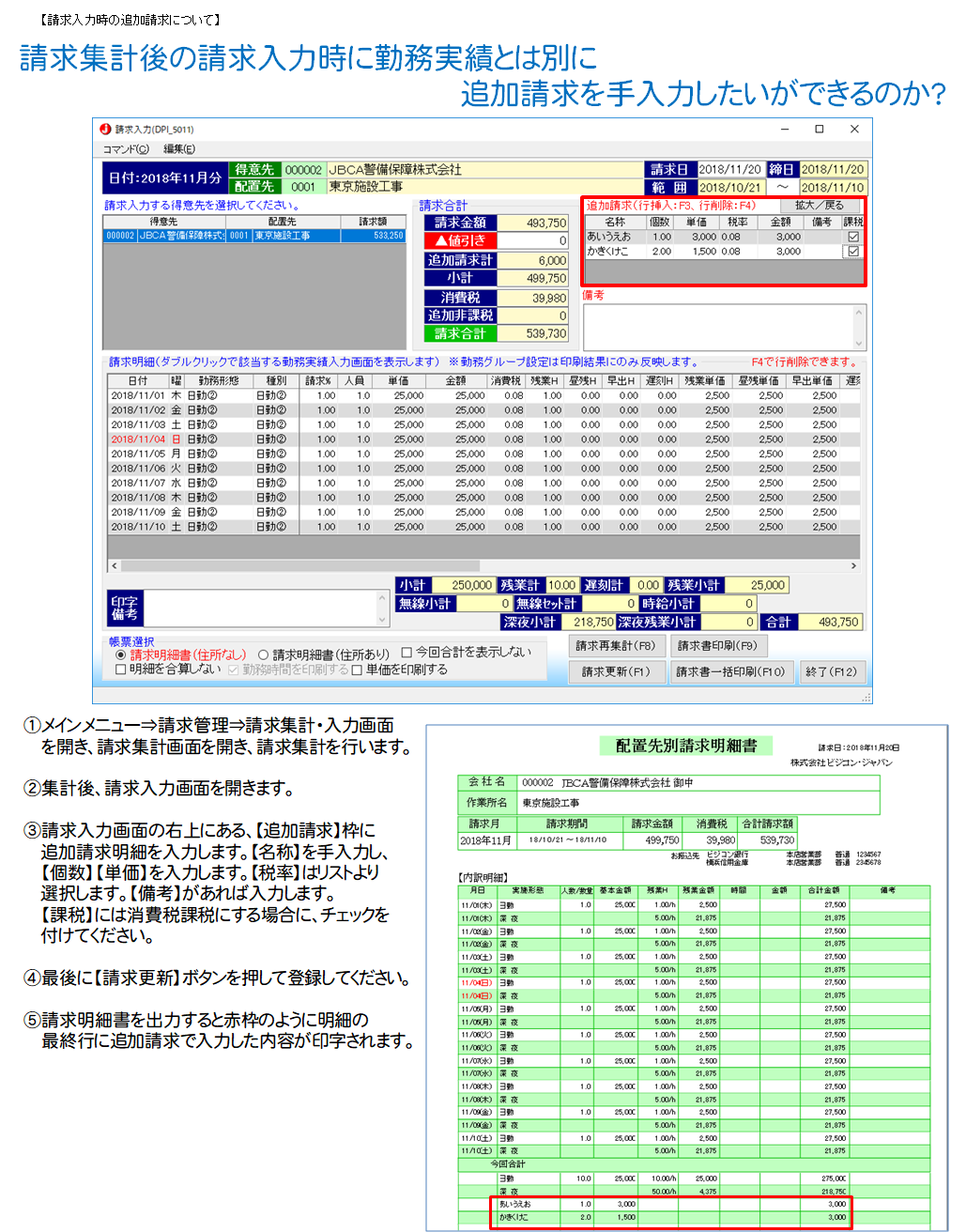 - 請求集計後の請求入力時に勤務実績とは別に追加請求を手入力したいができるのか?