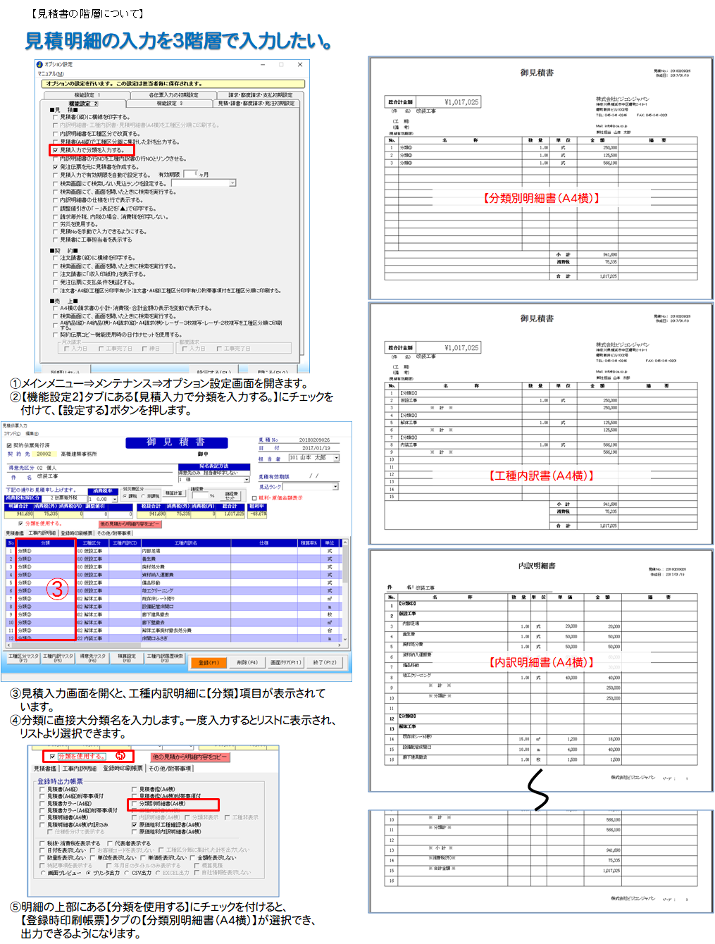 見積入力画面を開くと【工種区分】の左隣に【分類】項目が表示されます。