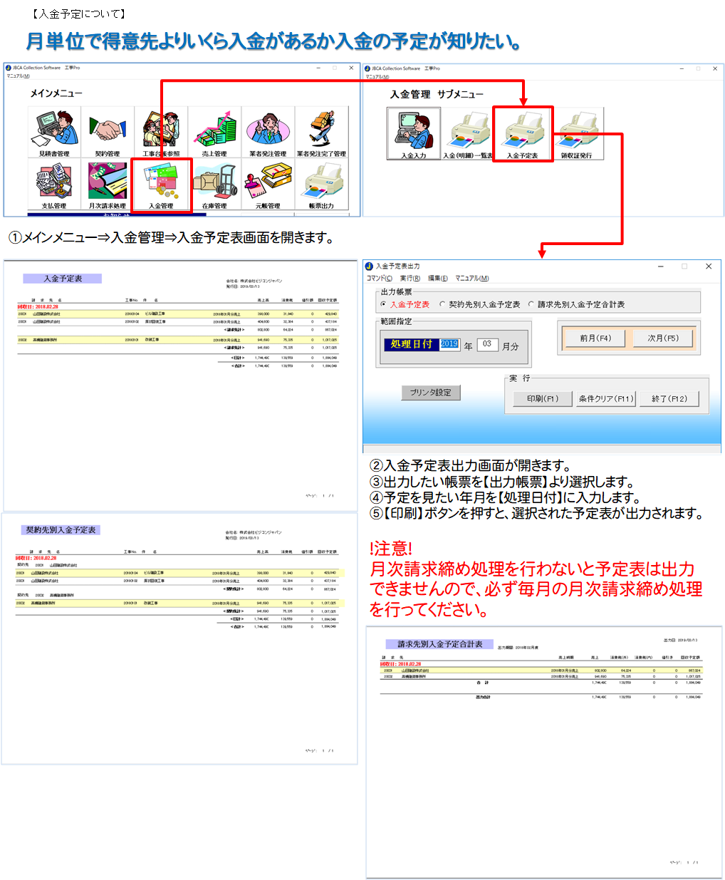 月単位で得意先よりいくら入金があるか入金の予定が知りたい。
