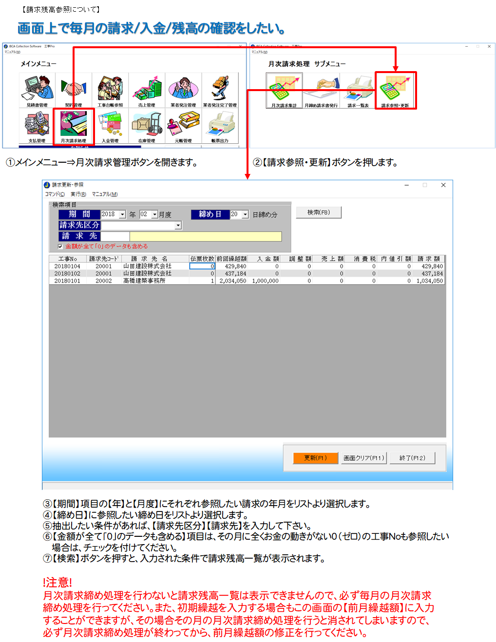 請求締め処理を行うとデータが更新されます。