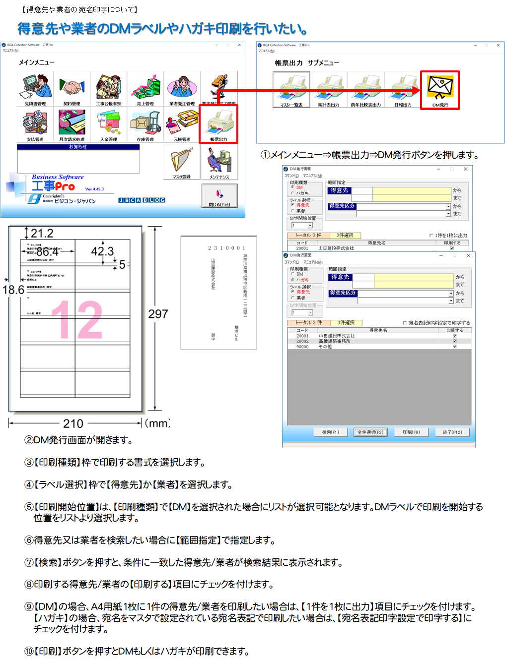 得意先や業者のDMラベルやハガキ印刷を行いたい。