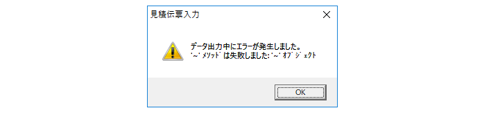 エラー:データ出力中にエラーが発生しました。’~’メソッドは失敗しました。:’~’オブジェクト