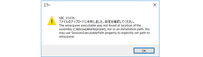 The winscp.exe executable was not found at location of the assemby (c:¥jbcaap¥keibipronet), nor in an installation path, You may use Session.ExecutablePath property to explicitly set path to winscp.exe.