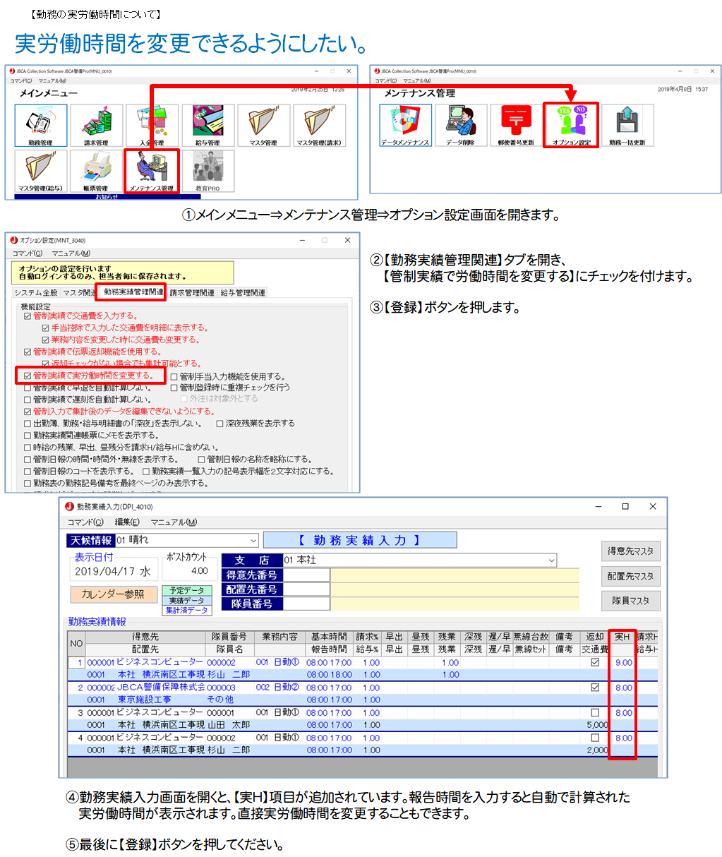 【管制実績で実労働時間を変更する】にチェックを付けて【登録】ボタンを押します。