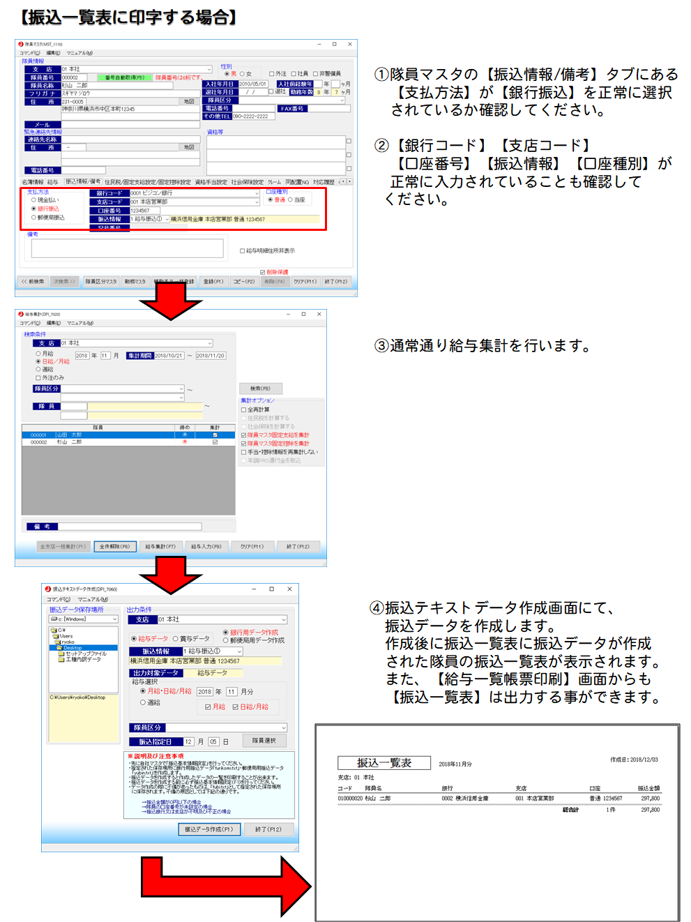 - 振込一覧表を出力するとある隊員だけ表示されないのはどうしてですか?