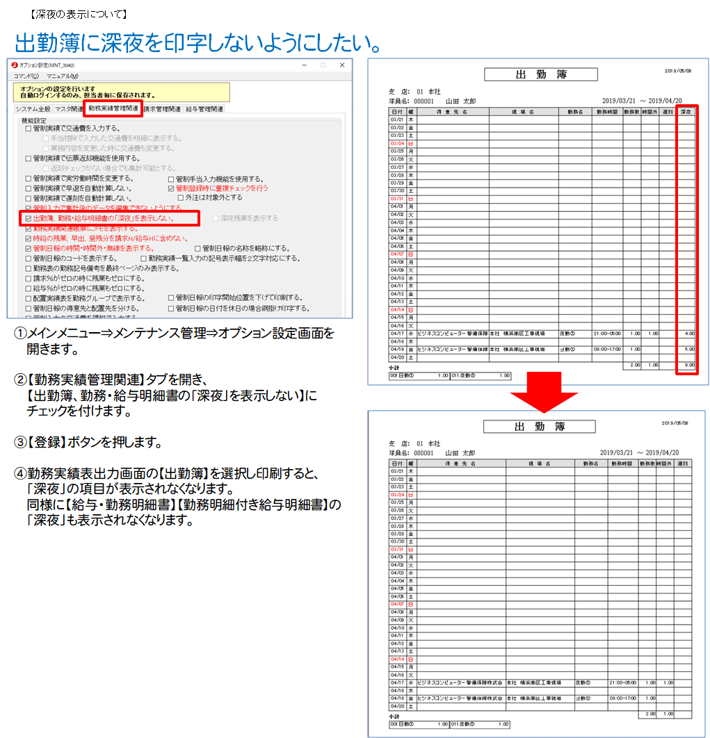 出勤簿、勤務・給与明細書に「深夜」が表示されなくなります。
