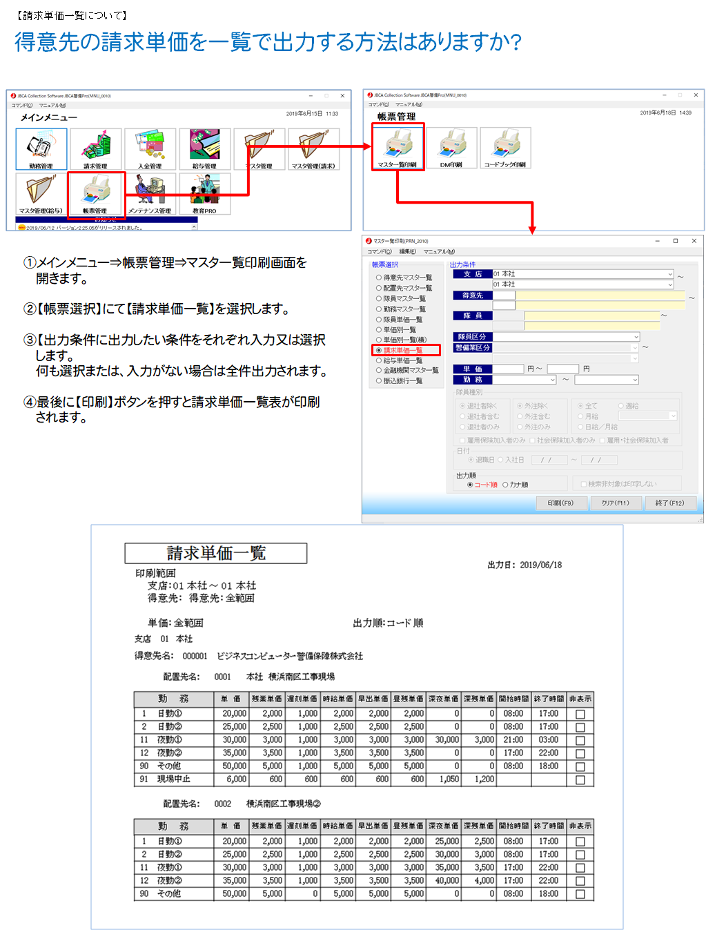 - 得意先の請求単価を一覧で出力する方法はありますか?