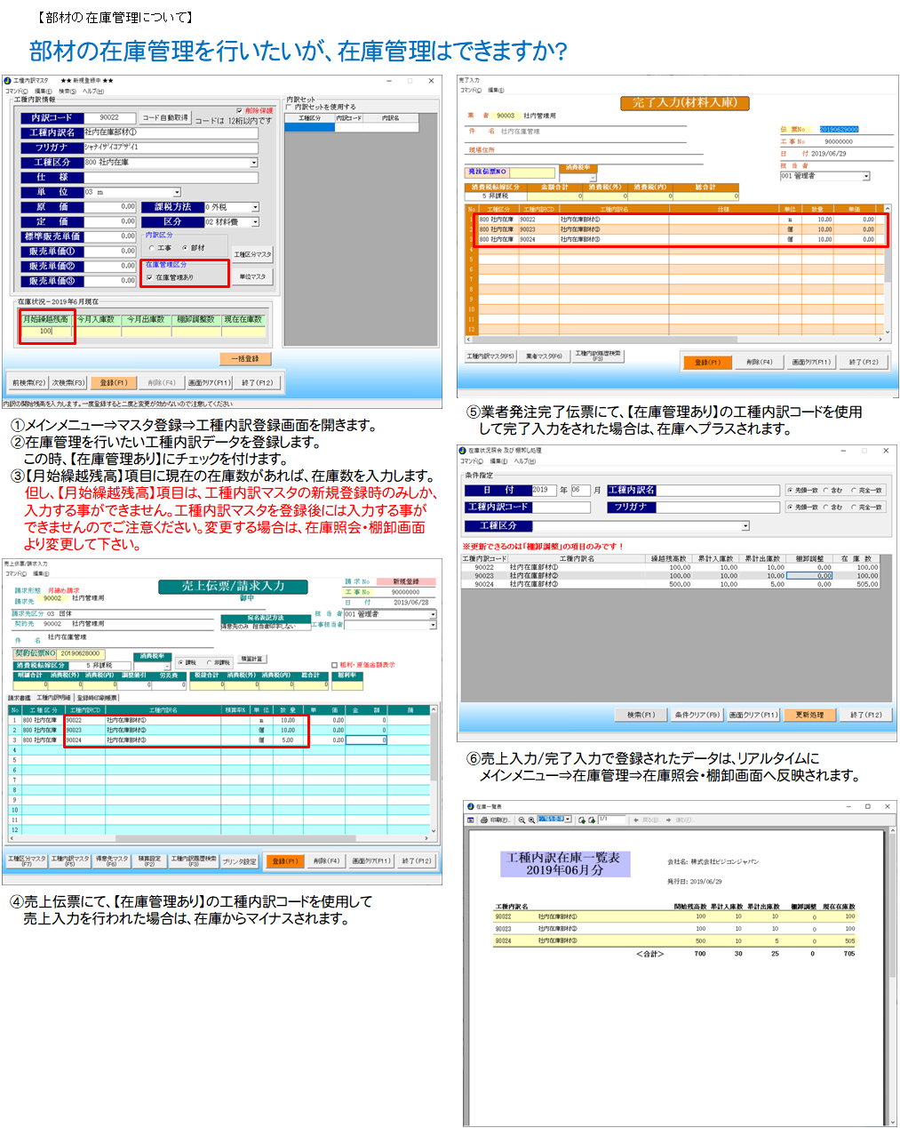 - 部材の在庫管理を行いたいが、在庫管理はできますか?