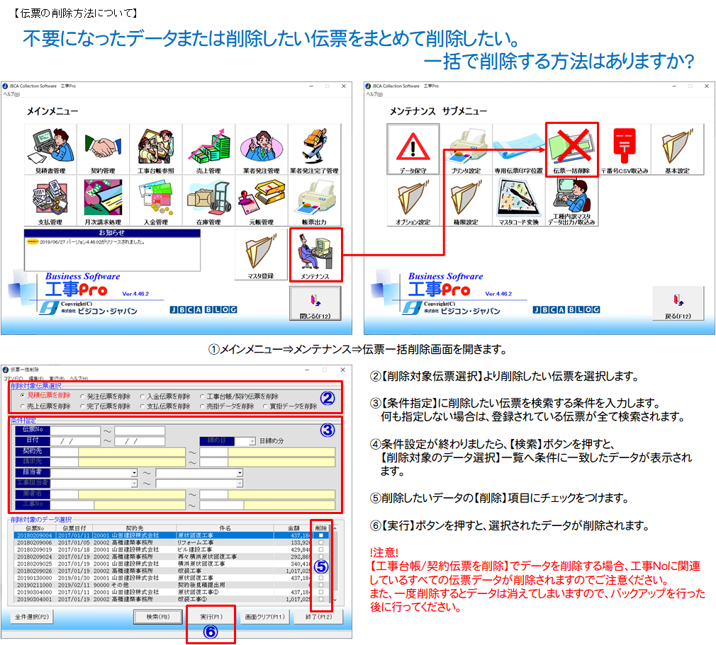 - 不要になったデータまたは削除したい伝票をまとめて削除したい。