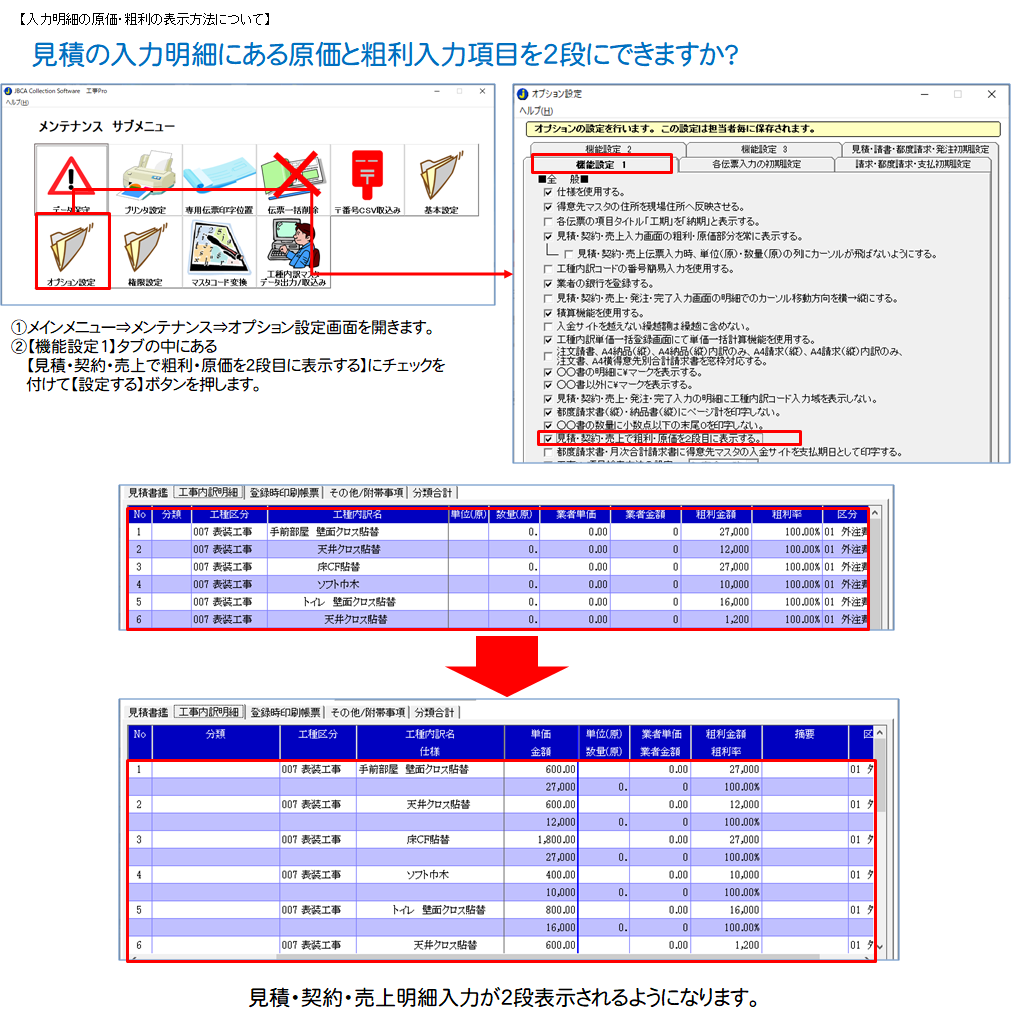 見積・契約・売上入力の明細が2段表示されるようになります。