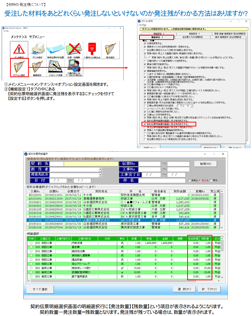 - 受注した材料をあとどれくらい発注しないといけないのか発注残がわかる方法はありますか?