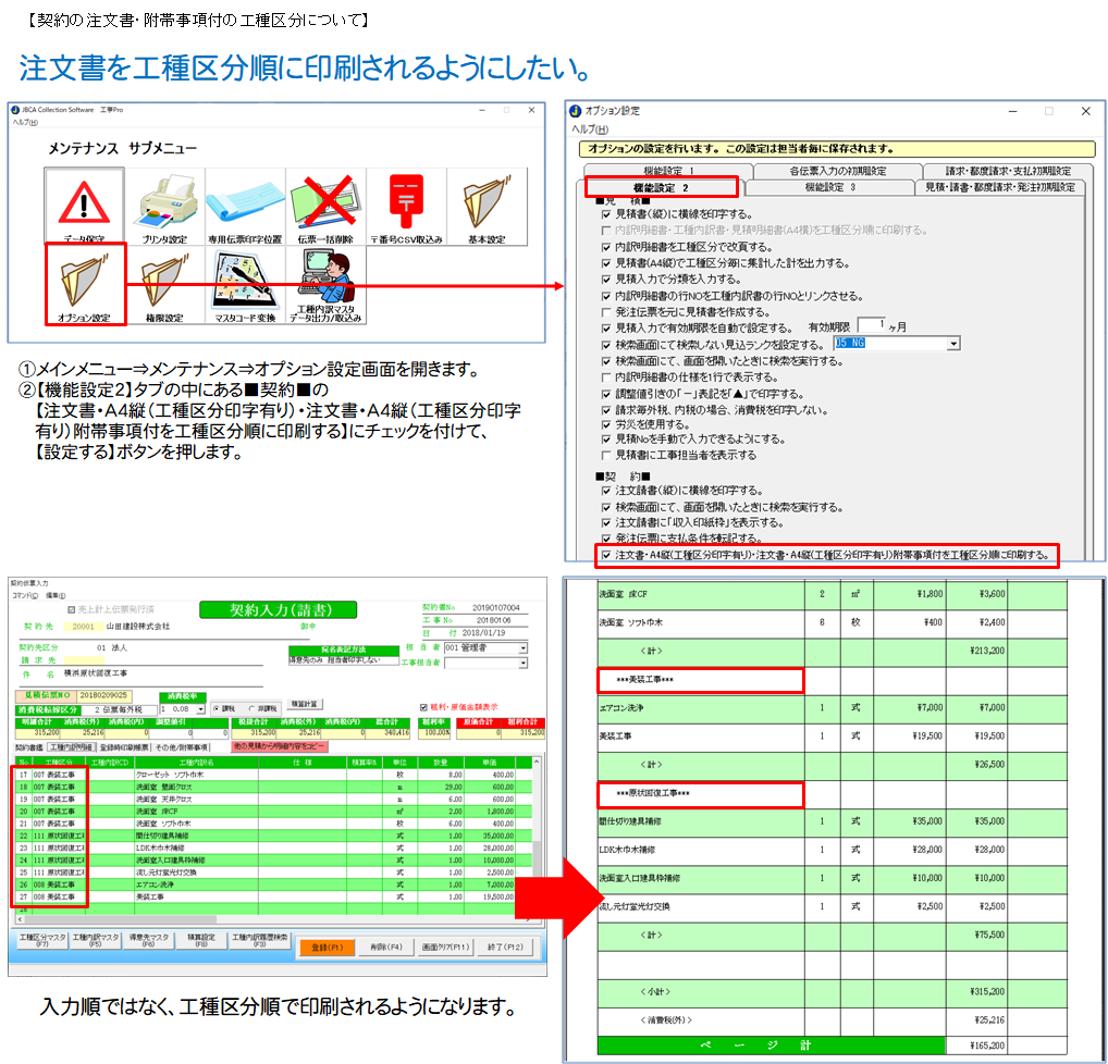 【注文書・A4縦(工種区分印字有り)・注文書・A4(工種区分印字有り)附帯事項付を工種区分順に印刷する】に