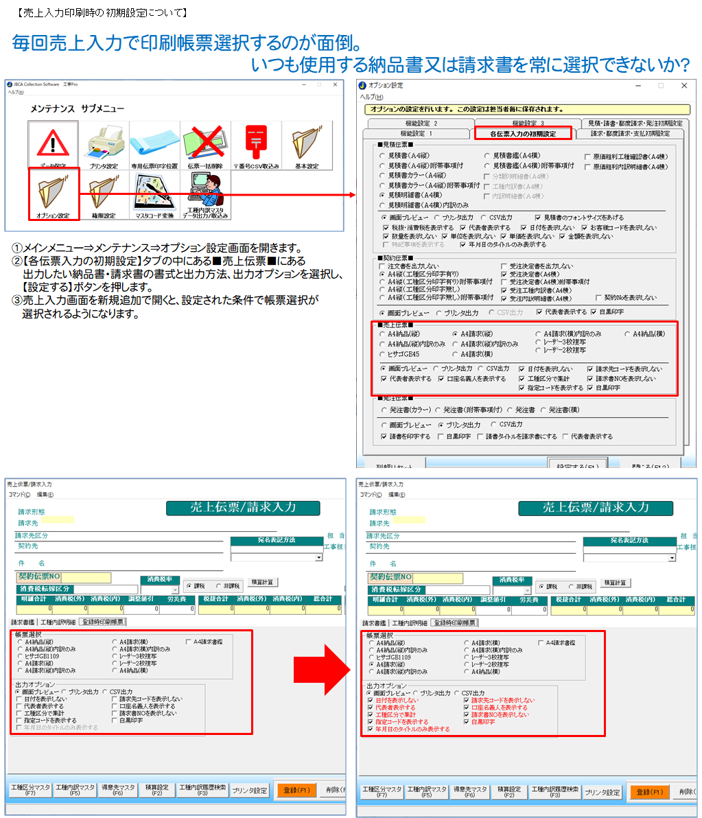 - 毎回売上入力で印刷帳票選択するのが面倒。いつも使用する納品書又は請求書を常に選択できないか?