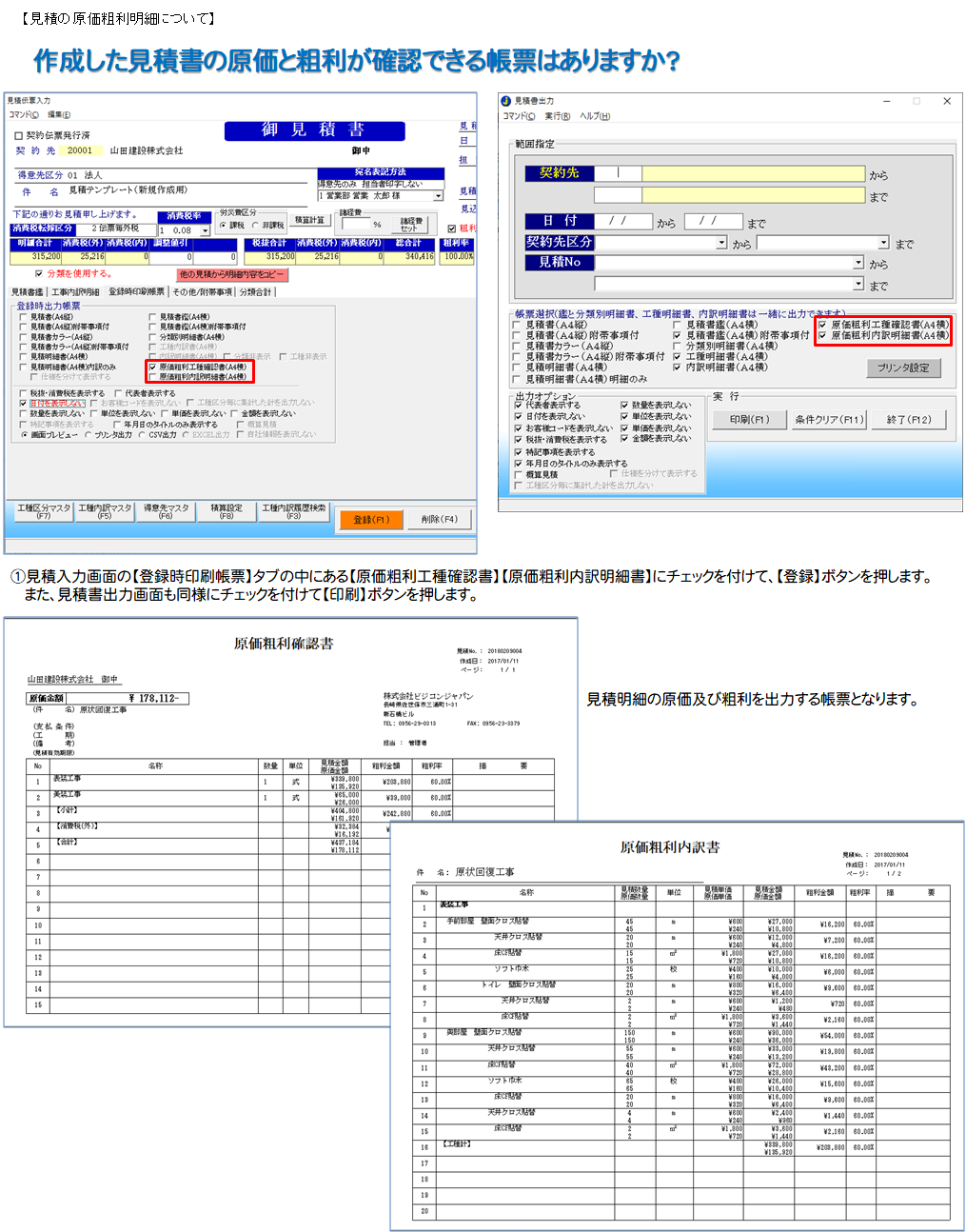- 作成した見積書の原価と粗利が確認できる帳票はありますか?