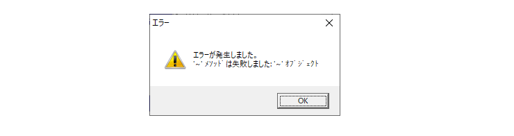 エラー:エラーが発生しました。’~’メソッドは失敗しました:’~’オブジェクト
