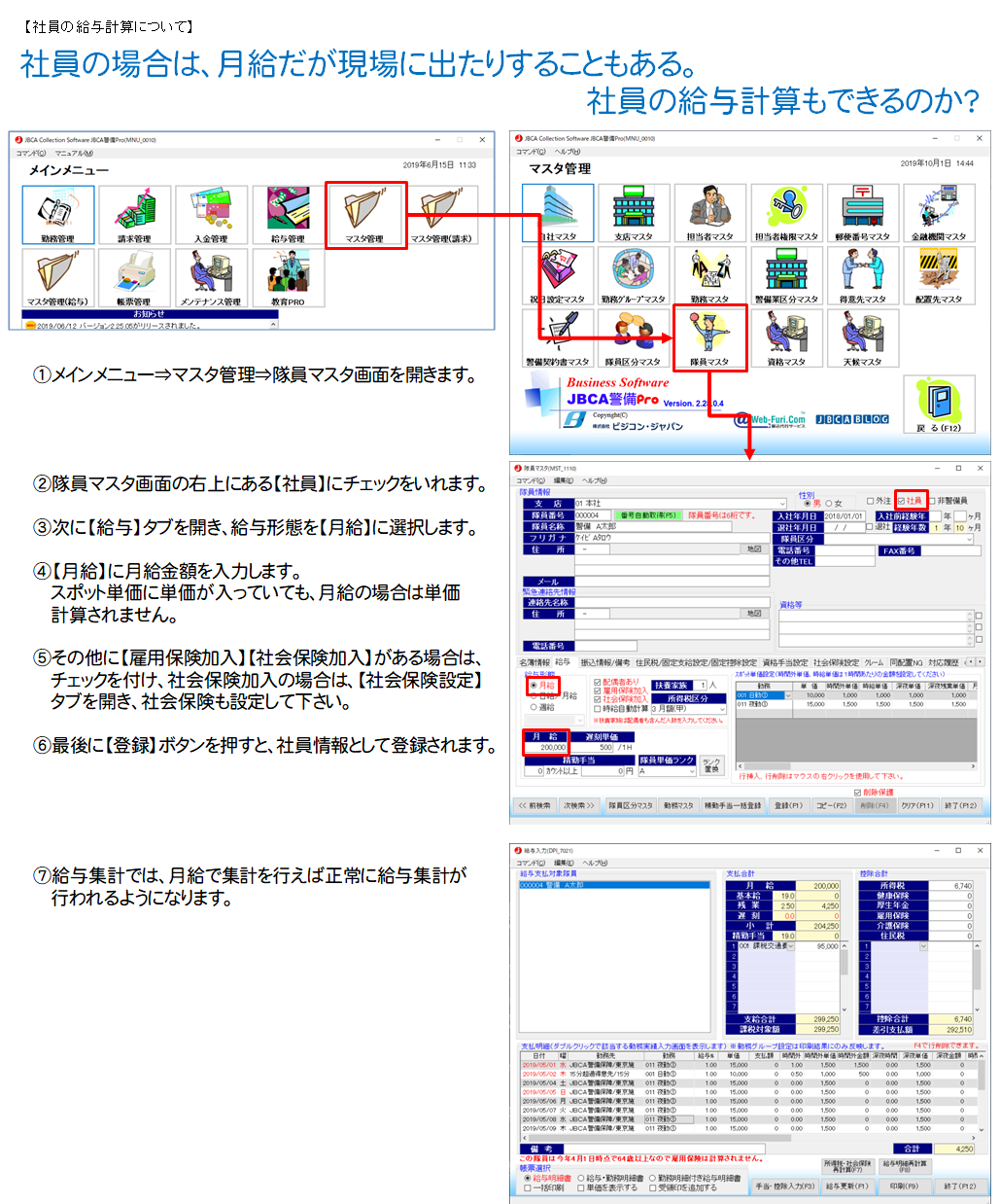- 社員の場合は、月給だが現場に出たりすることもある。社員の給与計算もできるのか?