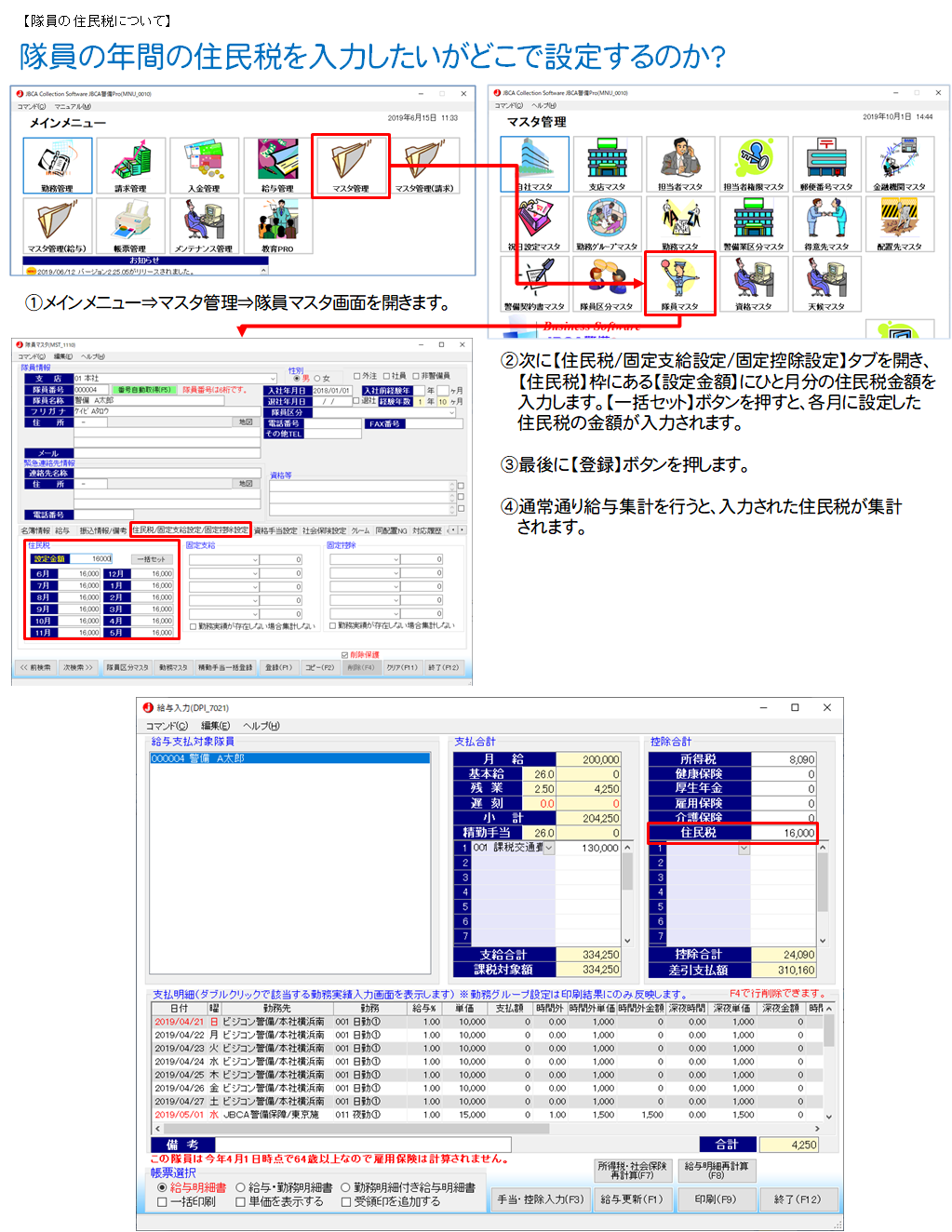 - 隊員の年間の住民税を入力したいがどこで設定するのか?