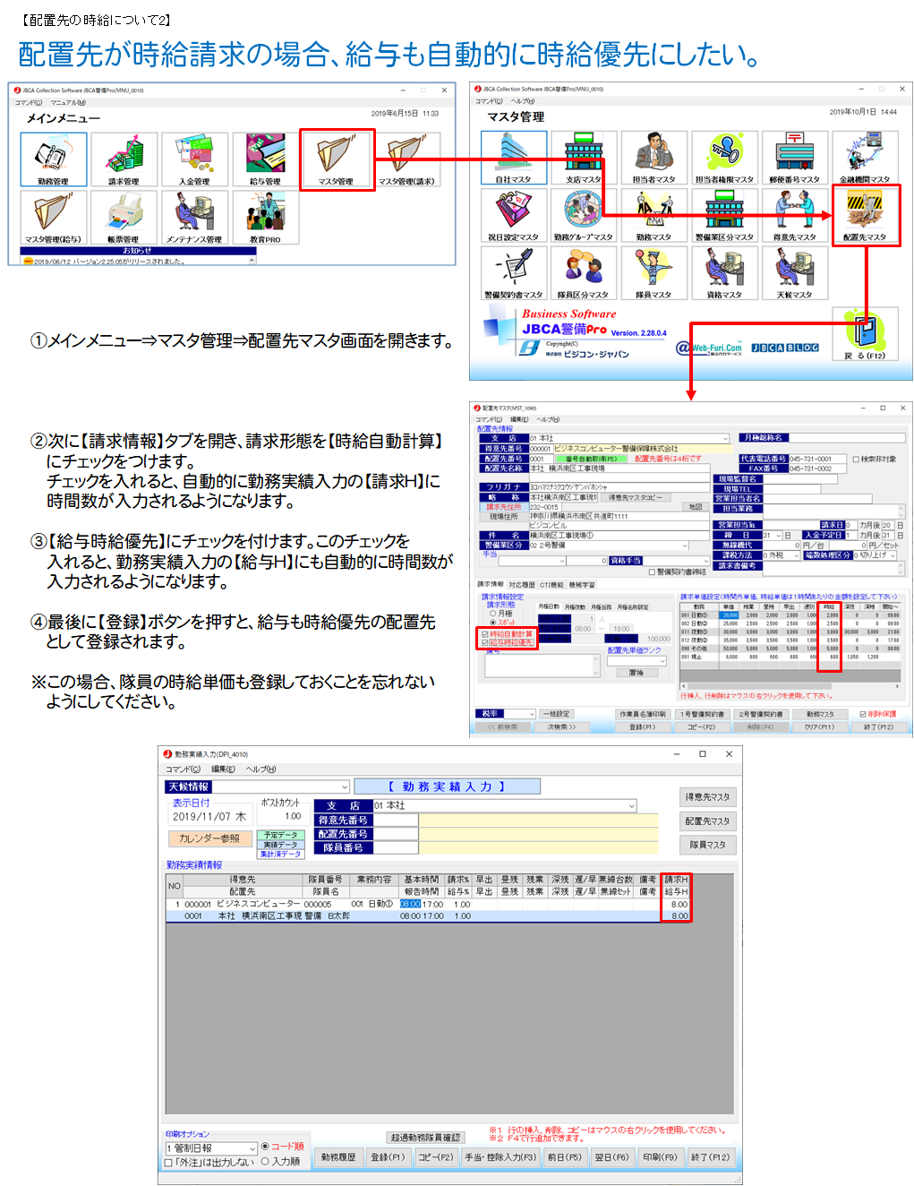 - 配置先が時給請求の場合、給与も自動的に時給優先にしたい。