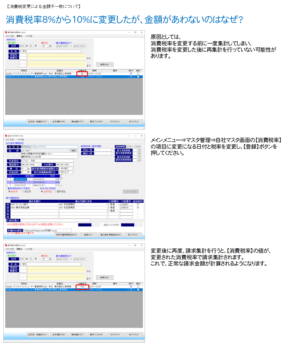 - 消費税率8%から10%に変更したが、金額があわないのはなぜ?