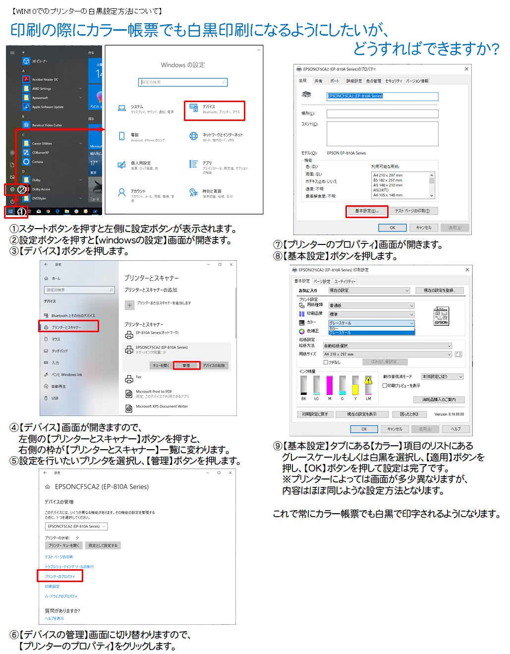 - 印刷の際にカラー帳票でも白黒印刷になるようにしたいが、どうすればできますか?