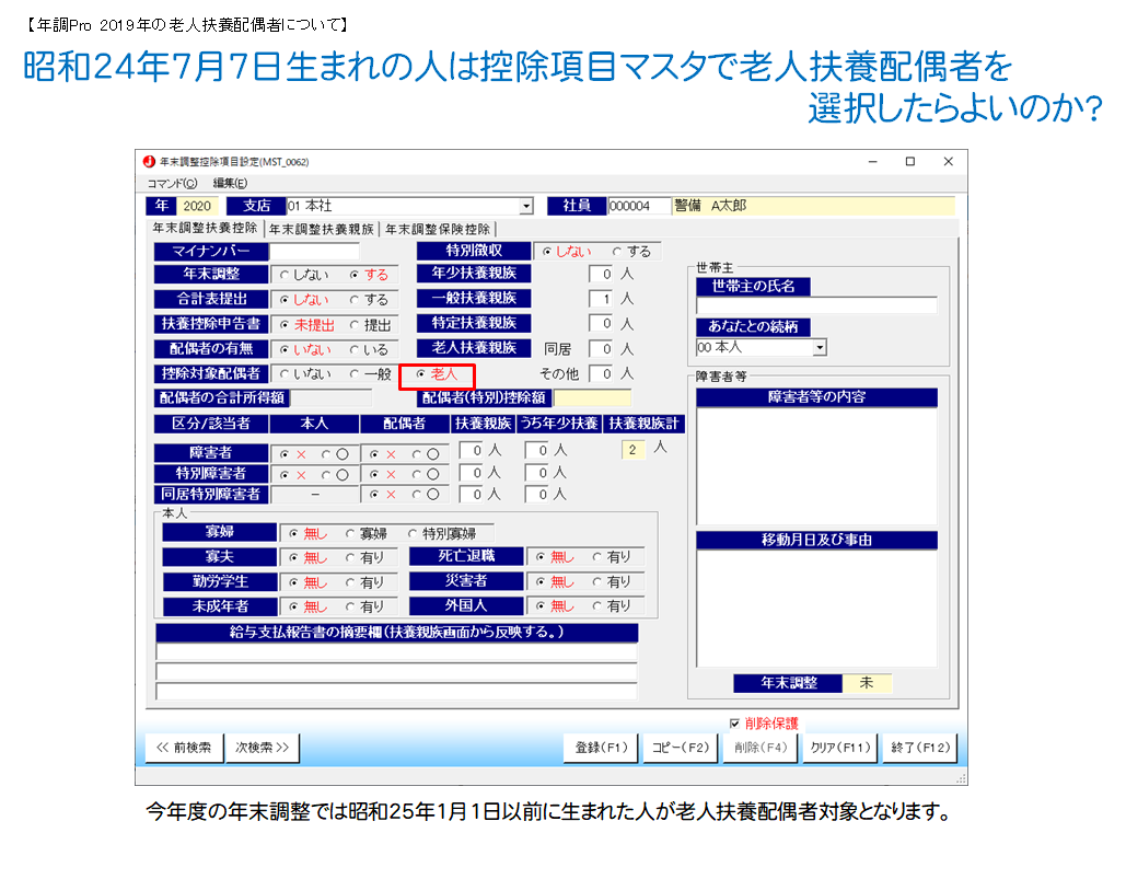 - 昭和24年7月7日生まれの人は控除項目マスタで老人扶養配偶者を選択したらよいのか?