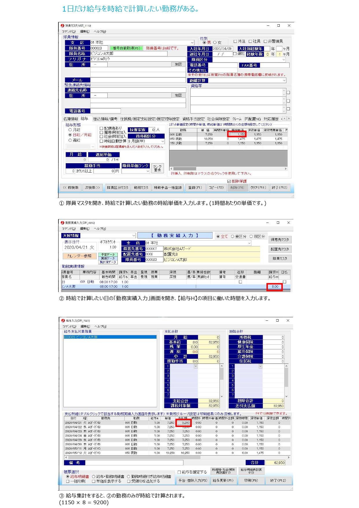 普段は給与を日当で支給していますが、一部の勤務では時給で計算をしたい場合はどのように操作をすれば良いですか?