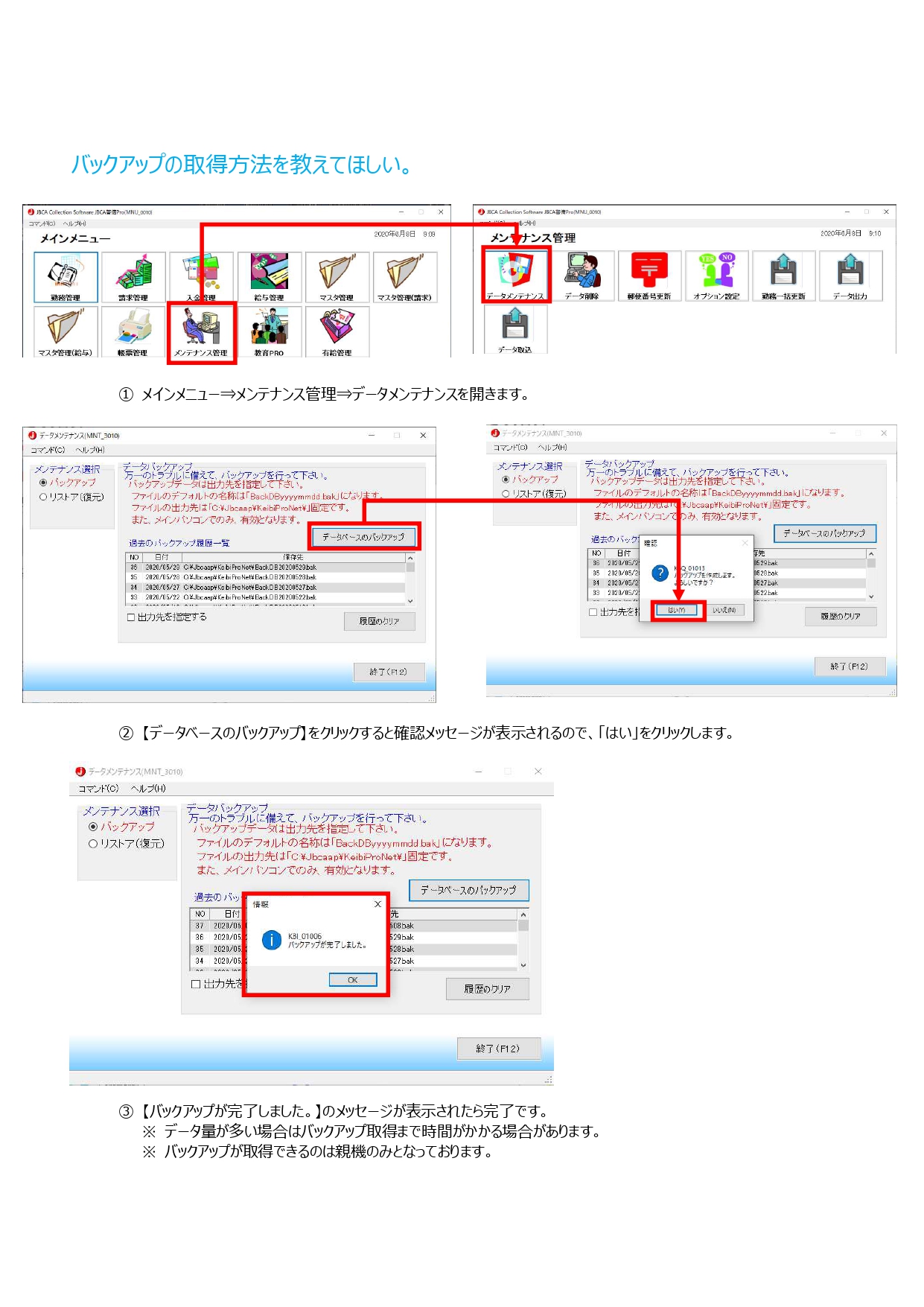 バックアップを取得したいのですがどうしたらいいでしょうか?