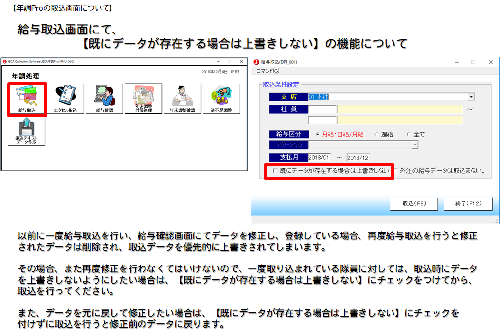 年調Proの取込画面で「データを上書きしない」の意味が分からないので、意味を教えて欲しい。