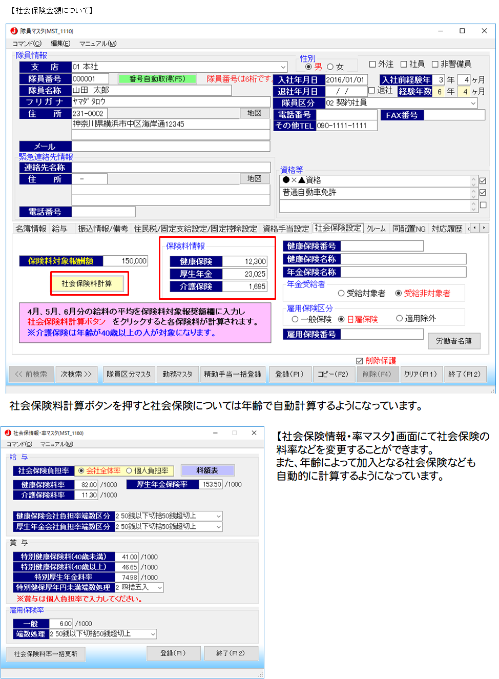 社会保険については年齢で自動計算するようになっています。