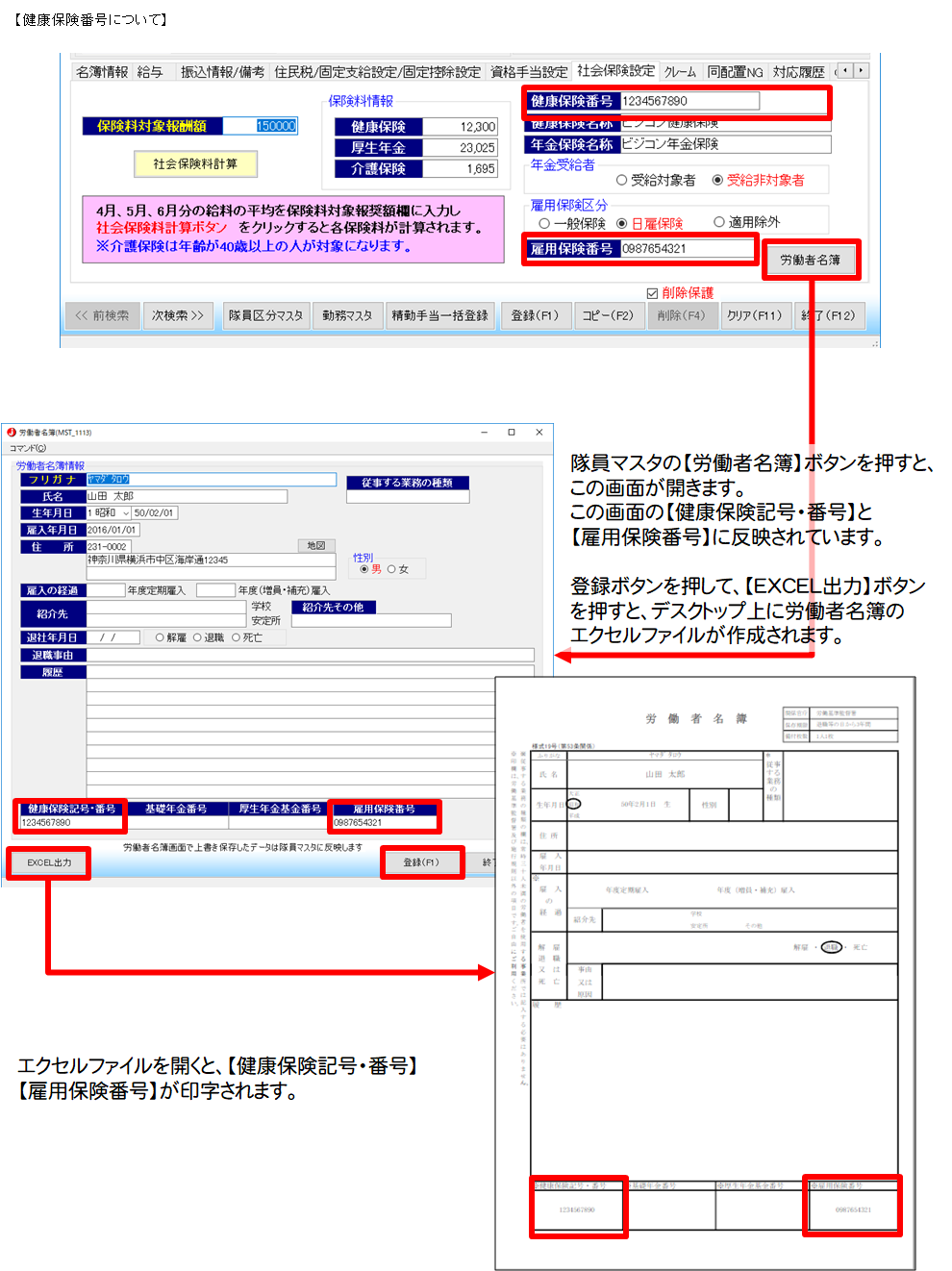 隊員マスタより出力できる、労働者名簿に反映されます。