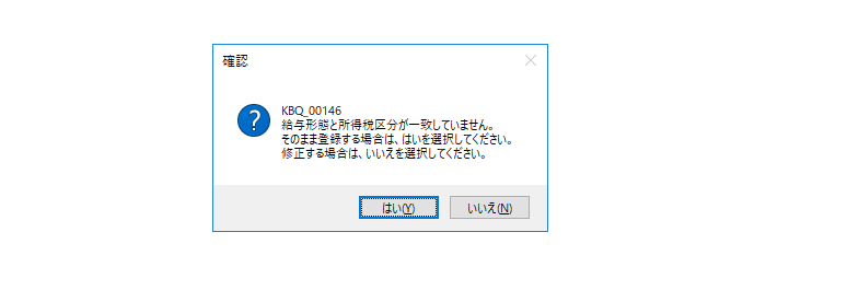 給与形態と所得税区分が一致していません。そのまま登録する場合は、はいを選択してください。